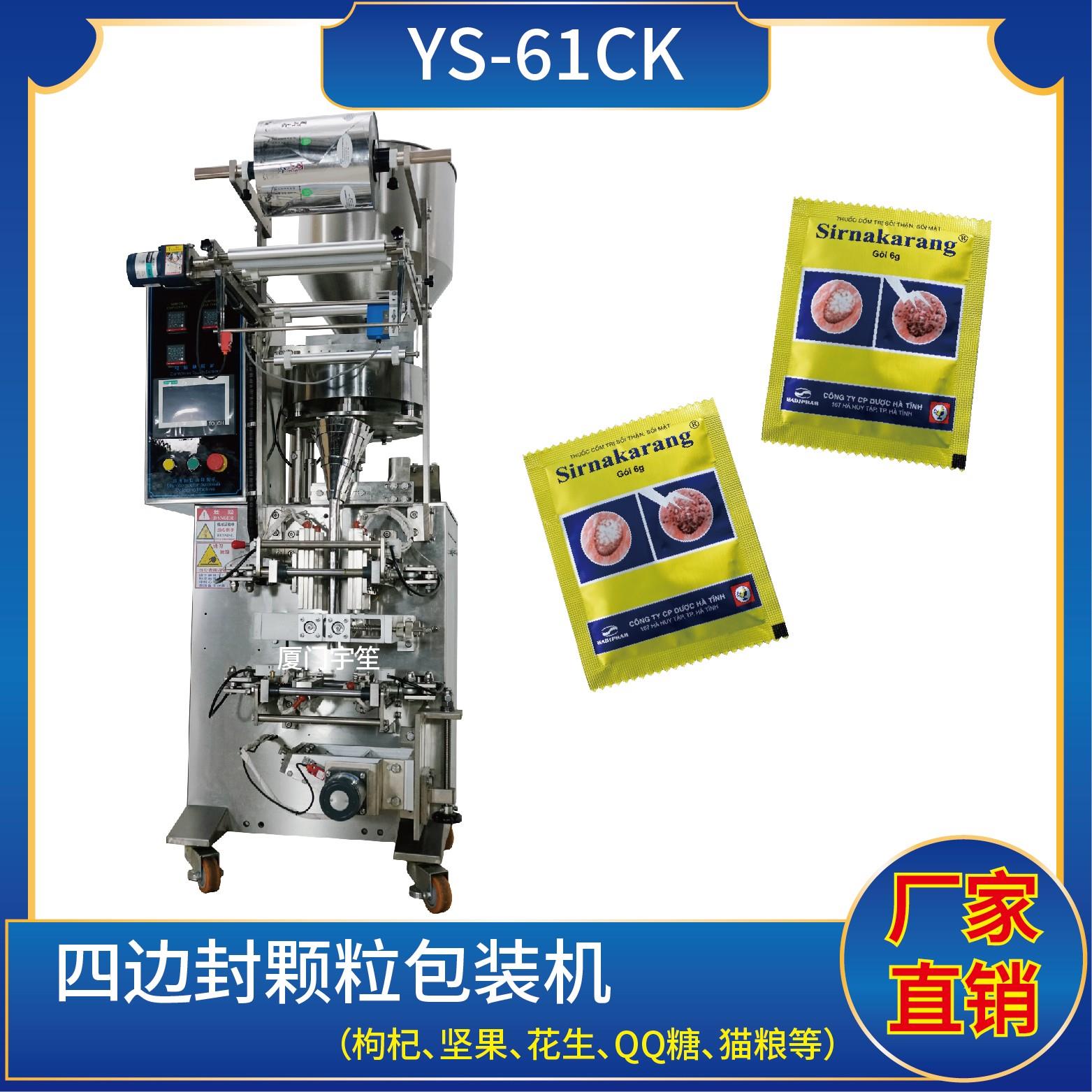 YP-60EK 三角袋包裝機(jī)1、適用于食品、醫(yī)藥、化工、化妝品行業(yè)中顆粒物品的計(jì)量包裝。2、可自動(dòng)完成制袋、計(jì)量、下料、封合、分切、計(jì)數(shù)、且可根據(jù)客戶要求配置打印批號(hào)等功能。3、觸摸屏操作,PLC 控制,驅(qū)動(dòng)步進(jìn)電機(jī)控制袋長(zhǎng),性能穩(wěn)定、調(diào)整方便、檢測(cè)準(zhǔn)確。智能式溫控儀,PID調(diào)節(jié),保證將溫度的誤差范圍控制在1℃以內(nèi)?!?/p>
