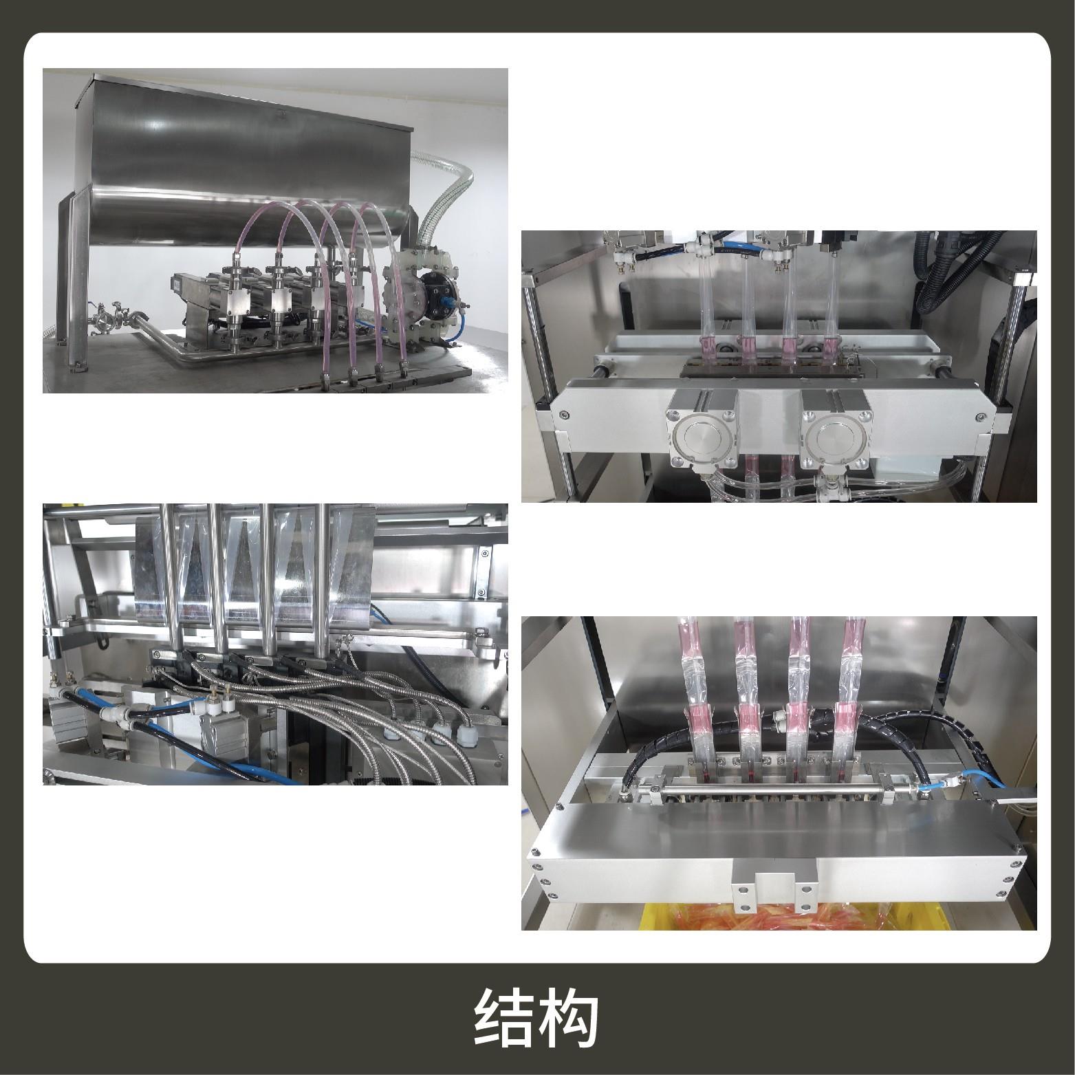 特 點1、適用于各行業(yè)中酵素、果汁、漱口水、洗護用品、染發(fā)劑、化妝品小樣等醬料、液體物品的多列異形袋計量包裝。