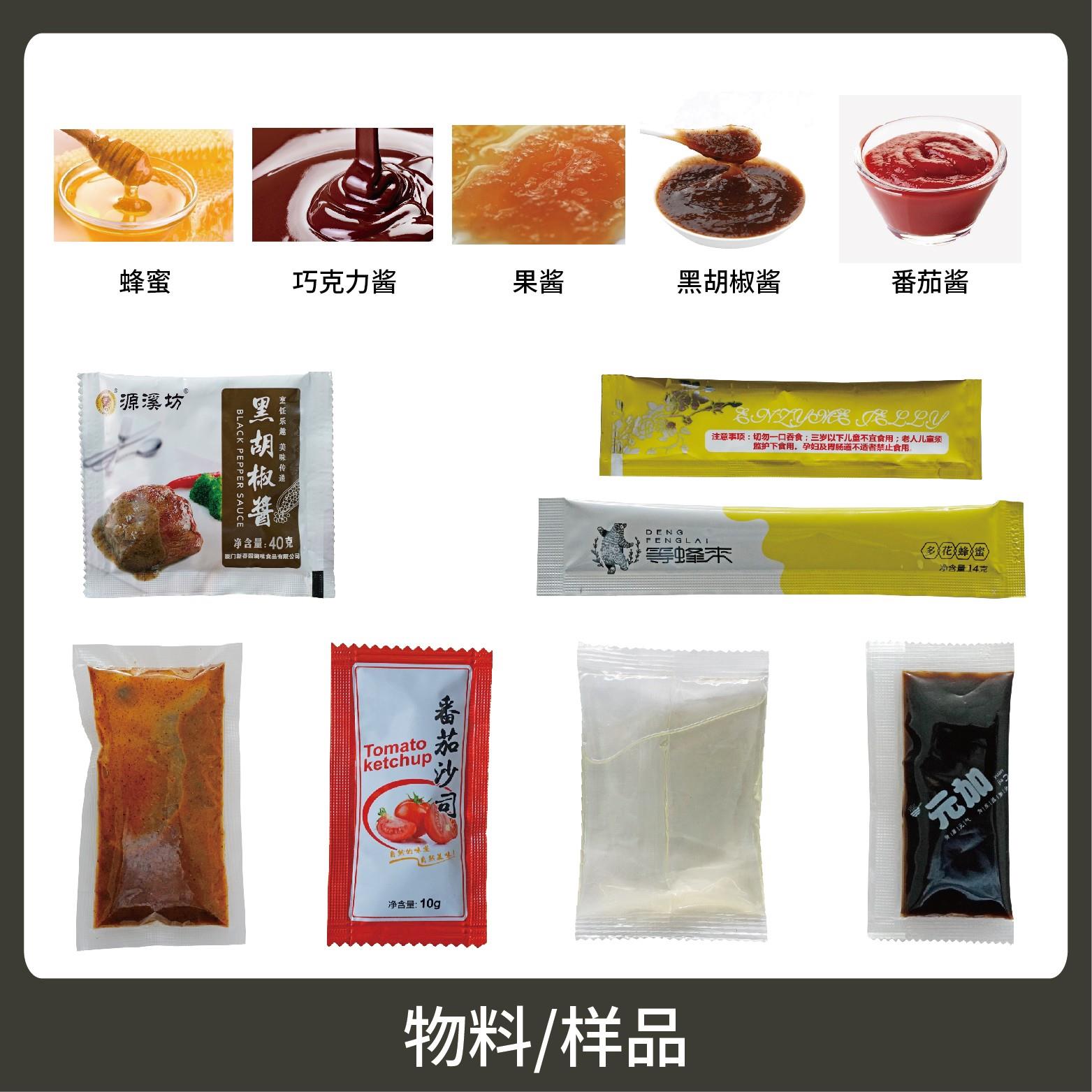 1、適用于食品、醫(yī)藥、化工、化妝品行業(yè)中液體、醬料物品的計量包裝,如:黑胡椒醬、辣椒醬、番茄醬等。