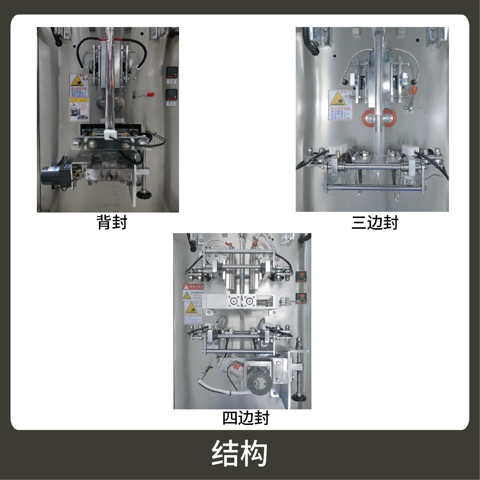 3、觸摸屏操作,PLC 控制,驅(qū)動步進(jìn)電機控制袋長,性能穩(wěn)定、調(diào)整方便、檢測準(zhǔn)確。智能式溫控儀,PID調(diào)節(jié),保證將溫度的誤差范圍控制在1℃以內(nèi)。